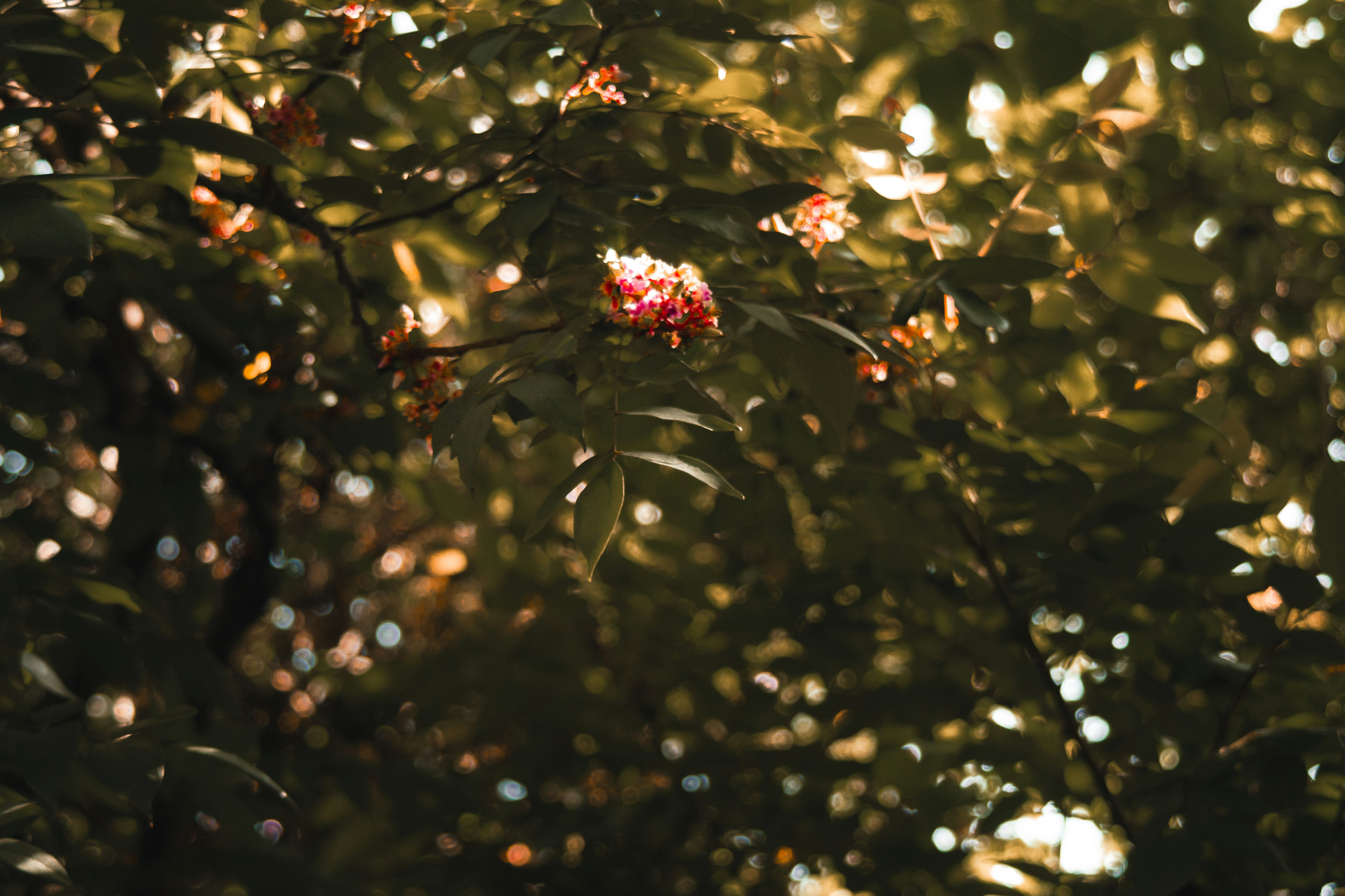 Both taken on a slow afternoon along the Serepok River. The first from a boat, watching the bank slip past — trees, grass, a few rooftops. The second looking up through a flowering tree, the light breaking through in patches.